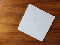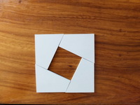 Which square? The four piece one or the five piece one?Either one actually depending on which way you rotate, but when you make the five piece one there is a hole in the middle into which the small square piece will exactly fit. Challenge the students to create both squares in this way and sketch how they do it.