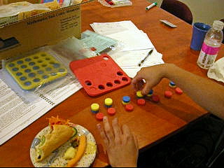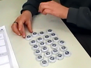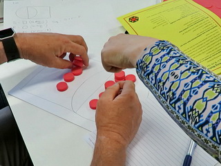 Paul Haenen's Year 3/4 at Loxton North Primary School are on a Multiplication Journey. Today they are exploring different arrays for the same number and recording what they find. They are using bottle tops as their equipment and are very willing to talk about the mathematics they are experiencing. It's all about equal rows ... and rows going across your tummy, just like they do for an actor on stage.
