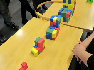 A group from the same class as Painted Cubes 1 who use different equipment and show evidence of multiplicative thinking. However, explaining that thinking to each other is a bit of a problem for some in the group. In the end the teachers asks if he may show, rather than tell the explanation. But then the video had to stop. What might he have been intending to do?
