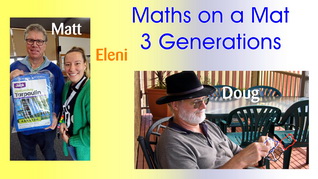 Eleni Pilafas, Matt Skoss and Doug Williams represent three generations of teachers who have used the Maths Mat to encourage learning mathematics through whole body involvement. At the 2024 annual conference of The Mathematical Association of Victoria they jointly presented a workshop using a double-sided mat to explore activities from K-10. The video presents extracts from this workshop.