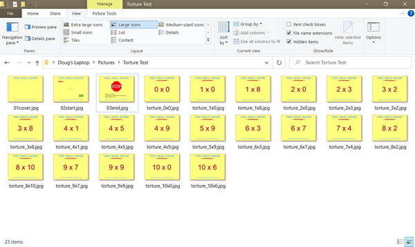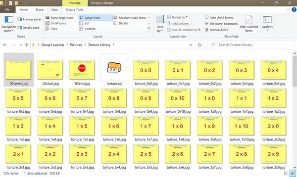 - Copy Cover, Start and Stop photos from Torture Library into Torture Test.