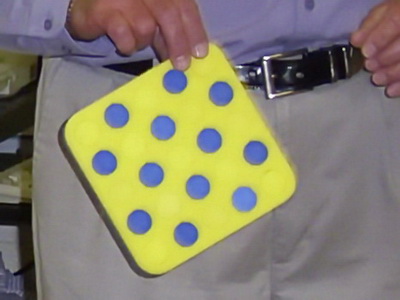 Plastic screw caps from soft drink and spring water bottles will fit the circles. Collect at least 10 in each of two colours. The board and the caps are a substitute for the school resource called Poly Plug. Buttons are also a possibility, even pebbles of similar sizes, if you have enough in two colours. If you think of something else that works let us know.