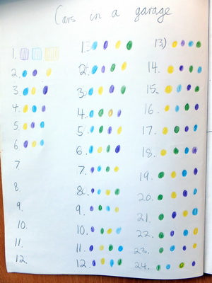 Remember, these photos were taken during the first 50 minutes task lesson. These examples and the one in the photo at the top of the page in which the two girls were working on Task 192, Keith's Kubes, show that recording can be introduced in a way students accept as a natural part of a mathematician's work. It also offers an opportunity to encourage and value individual presentation skills.