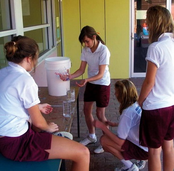 Rather than use this as a whole class investigation with everyone simultaneously, it is better (from the point of view of rice on the floor) to set up the task at a work station and rotate the students through it over a couple of days. Follow this with a class discussion which summarises what has been discovered and raises the 'What happens if...? questions. Students can then follow these up in groups according to the cups chosen, or assigned. An alternative (which is much easier to clean up) is to do as MacKillop College did and interpret the problem as liquids, then use it as one of the activities of a Maths Fun day.