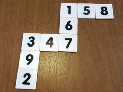 To turn this task into a whole class investigation you could make a class set of digit tiles. These would have many other uses. However, you could also ask students to rip up scrap paper so that they made nine pieces between each pair.